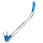 Cressi Delta 1 Snorkel New reversible snorkel (it can be used on the right and left side), designed for snorkeling, free-diving and scuba diving. The bore is made from variable section flexible material to assist swimming, and the top part is slightly bent to follow the profile of the diver's head. The shape of the coloured splash-top has been designed to prevent water from splashing in. The purge system has an elliptical valve and is contained in a special water collection well. The mouthpiece is identical to the ones mounted on Cressi regulators and can be swapped as the need may be. Purge system and bore are connected by a corrugated section on the outer side only (smooth inside) that make it possible for the mouthpiece and the drainage well to drop down into a handy vertical rest position, perfect for scuba diving. The mask attachment is the rapid, height adjustable clip-on.