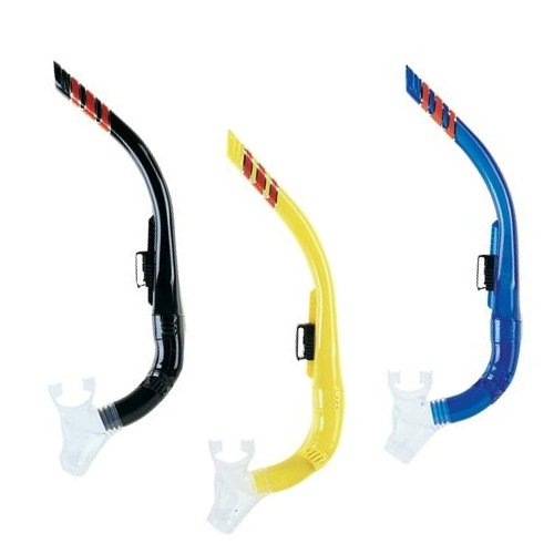 The bore is made from variable section flexible material to assist swimming, and the top part is slightly bent to follow the profile of the divers head. The shape of the colored splash-top has been designed to prevent water from splashing in. -amp-nbsp;