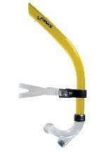 Designed for athletes in training, this snorkel allows you to relax in the water and maintain a completely laid out, horizontal position while you focus on improving your technique. It has a patented center-mount design that allows it to be worn with any standard swimming goggle, and it's hydrodynamic, so that it slips easily through the water. The tube also limits oxygen intake, which increases lung capacity and anaerobic stability.