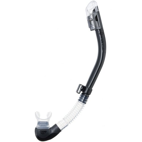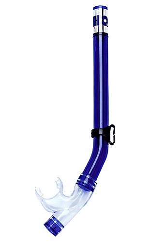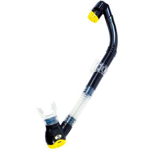 Snorkeling snorkel with a quick responding dry top that blocks the air entrance automatically when submerged. Large purge valve for easy water clearance. The purge housing drops away when not in use.