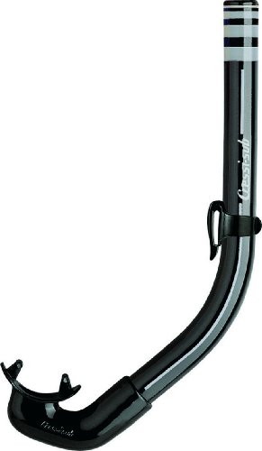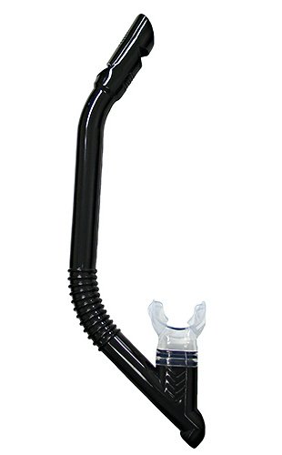 The American Snorkel is specifically designed for the needs of the free diver or spear fishermen. The tube is shorter than a standard snorkel to lower the dead air space and allowing faster and more critical ventilation associated with the needs of the free diver or spear fishermen. The large bore anatomically shaped snorkel tube is made from a flexible black material. Its no-sharp-curves design further relieves air turbulence and increasing proper ventilation. A soft silicone mouthpiece section fits into the end of the main snorkel tube; this is a swivel mouthpiece so it can be placed at the correct angle for comfortable and long use. The snorkel keeper is slides up and down the tube for perfect positioning on the mask strap.
