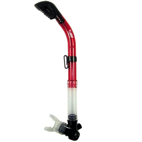 A unique, 100% absolute dry design - Patented upper valve keeps water from entering the snorkel. Allows air to easily enter snorkel for clean and unobstructed breathing. Specially designed cover guards against water splashing into the snorkel. When the dry snorkel is submerged in water, the patented hinged seal reacts to seal the snorkel, preventing water from entering. As you surface, the hinged seal swings open allowing air to enter.