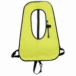 The snorkeler can orally inflate and deflate the volume of air in the vest to their requirements. Add just a little air to use it as a "pillow" under your chest to help hold your head and snorkel above water. Fully inflate in stressful situations to relax and rest. Deflate by yourself to return to surface diving activities. Fits comfortably over the snorkelers head and secures firmly to the body with two adjustable straps.